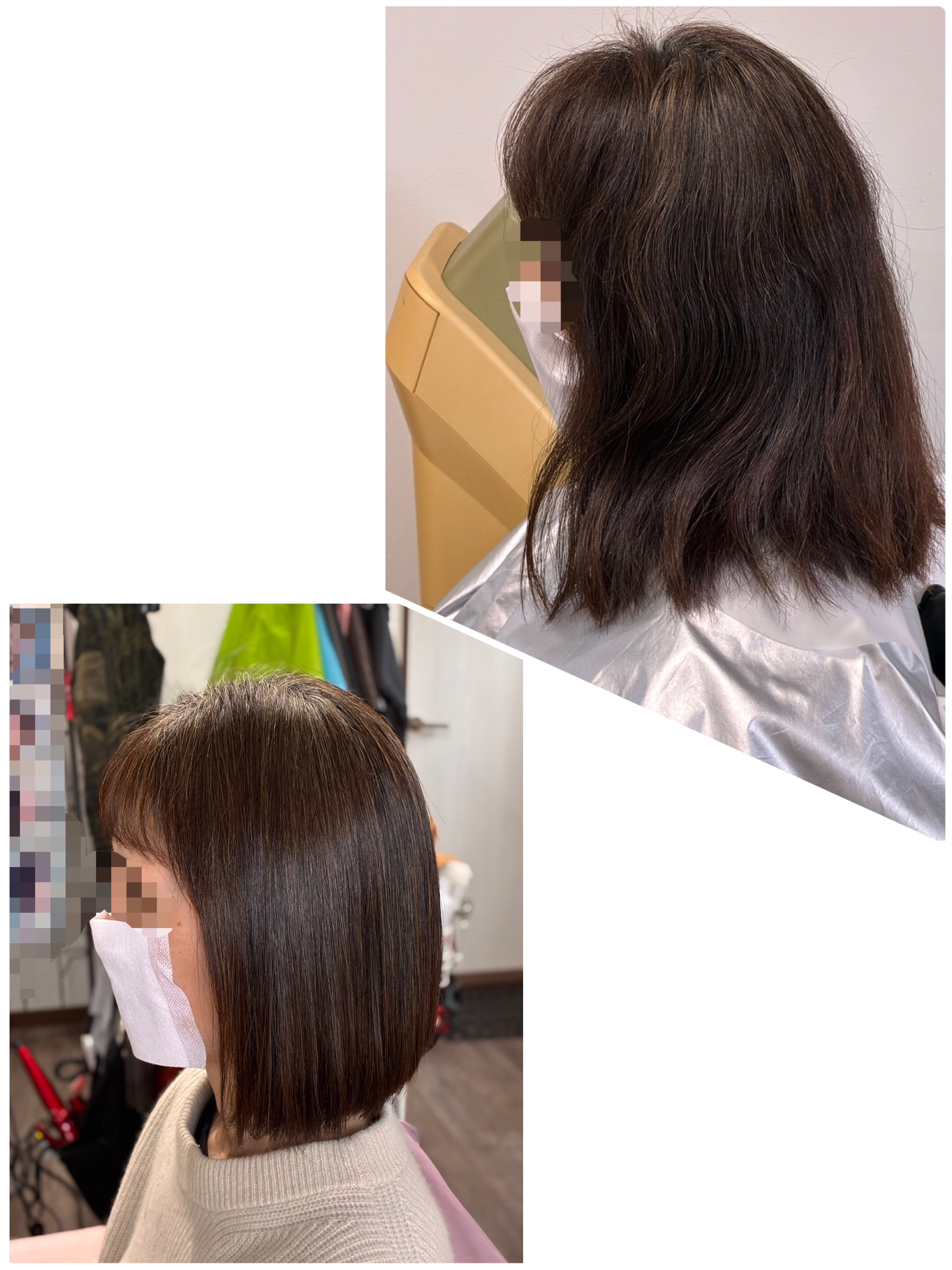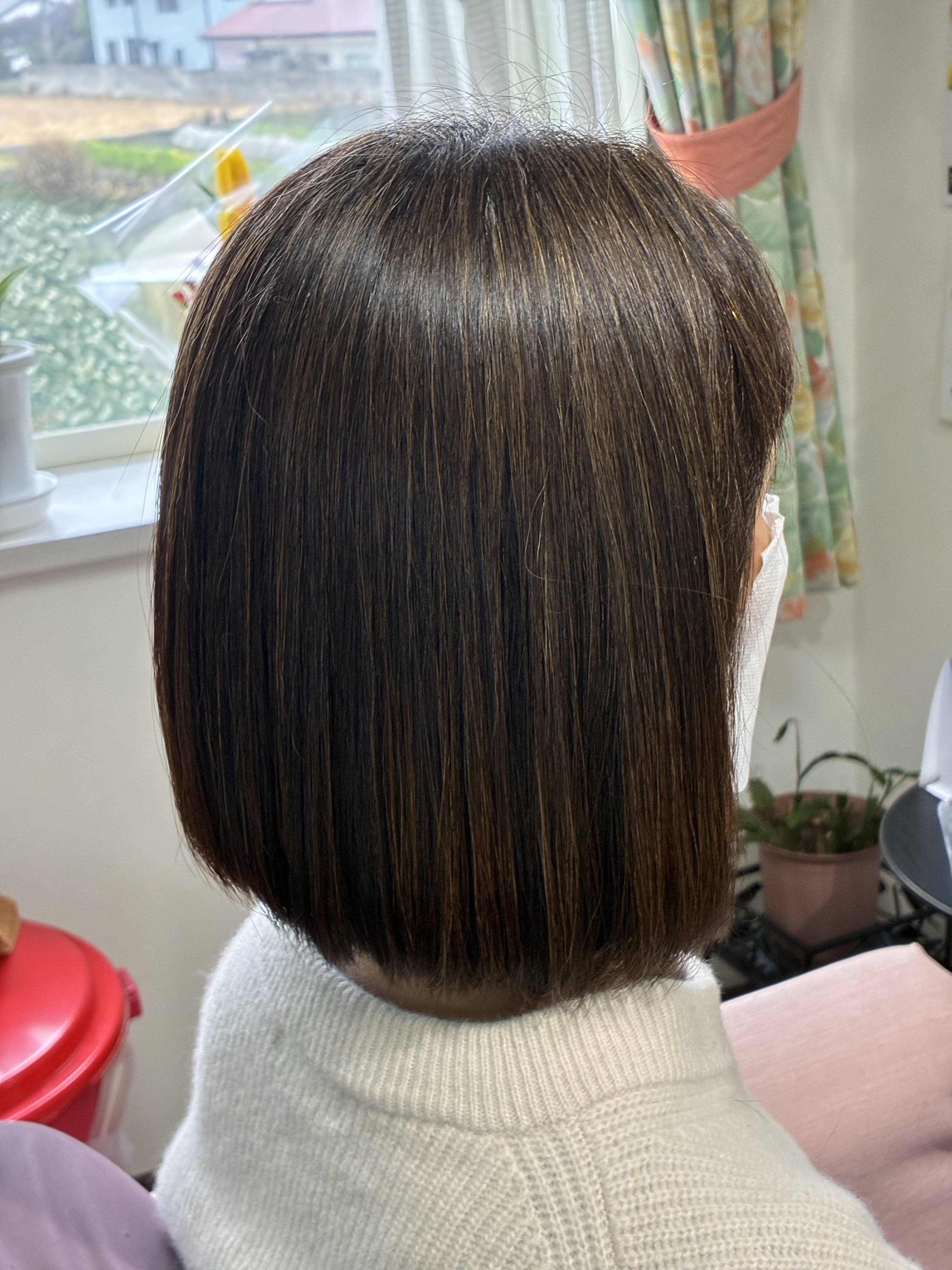 ご本人様は前下がりの短めボブ希望(内巻き)でしたので