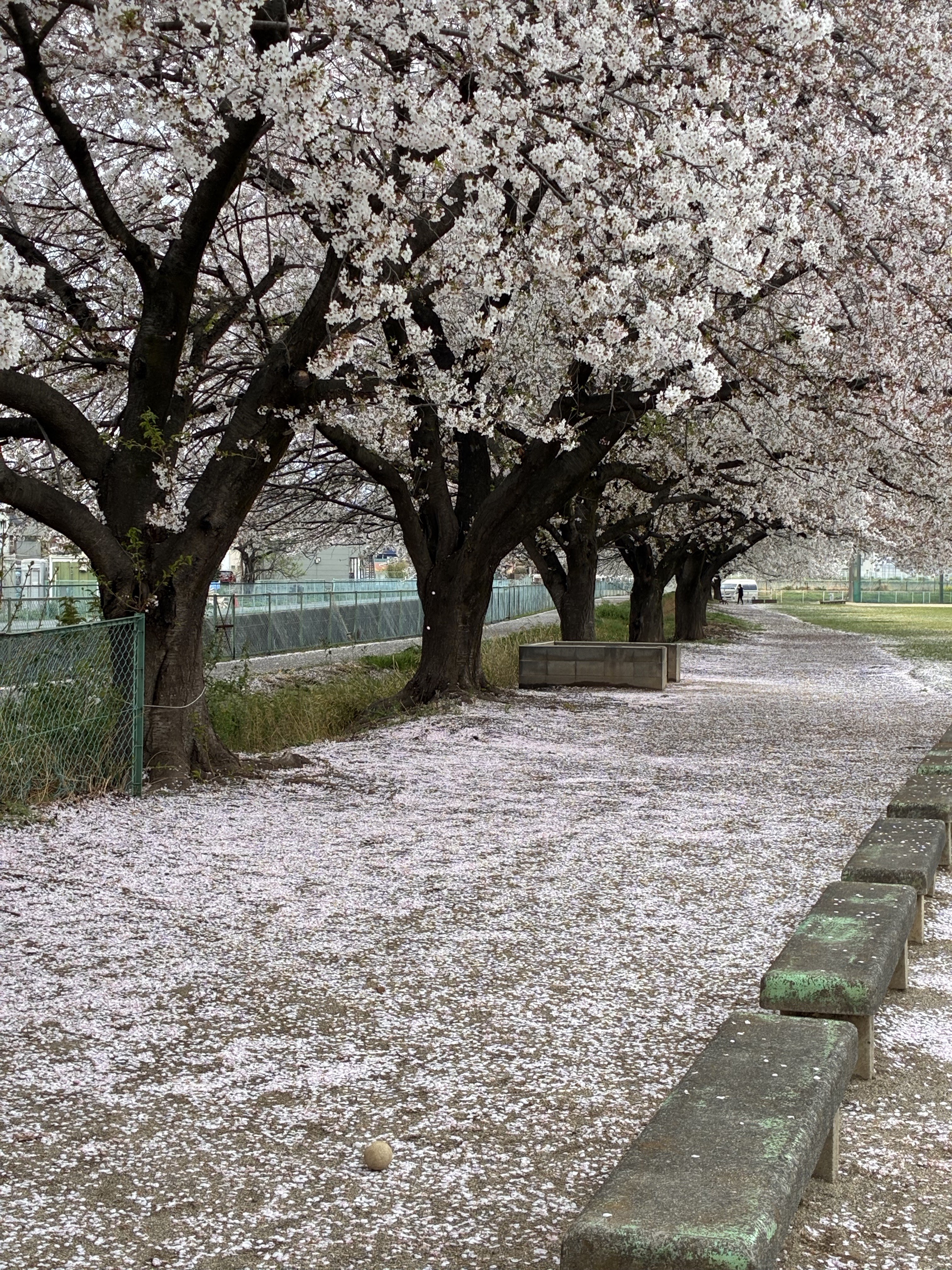 桜の見納めに行きました、と言っても家からすぐ近くの高校のそば