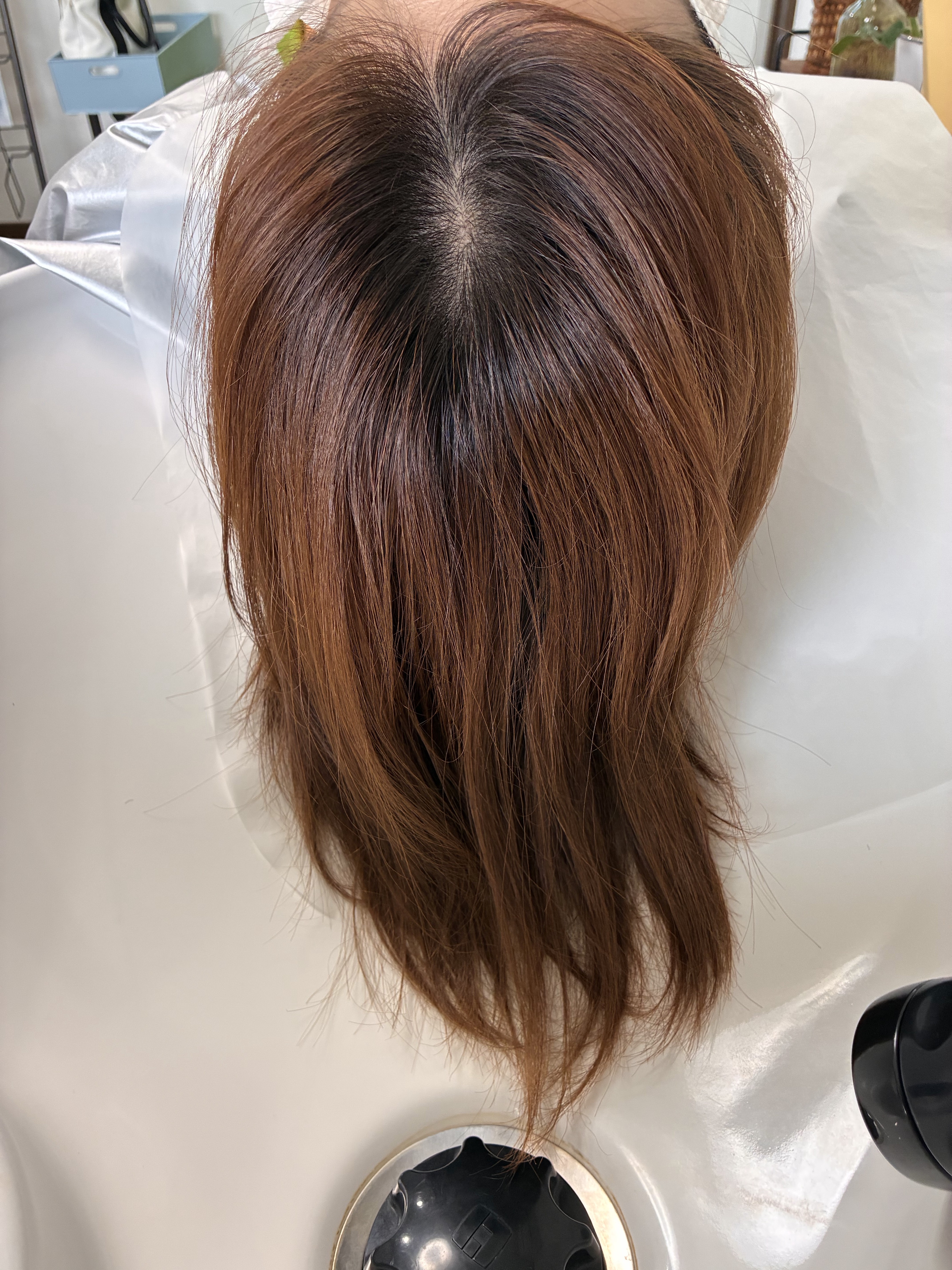 全頭ストレートですがリタッチで根元だけストレートでよいと思います